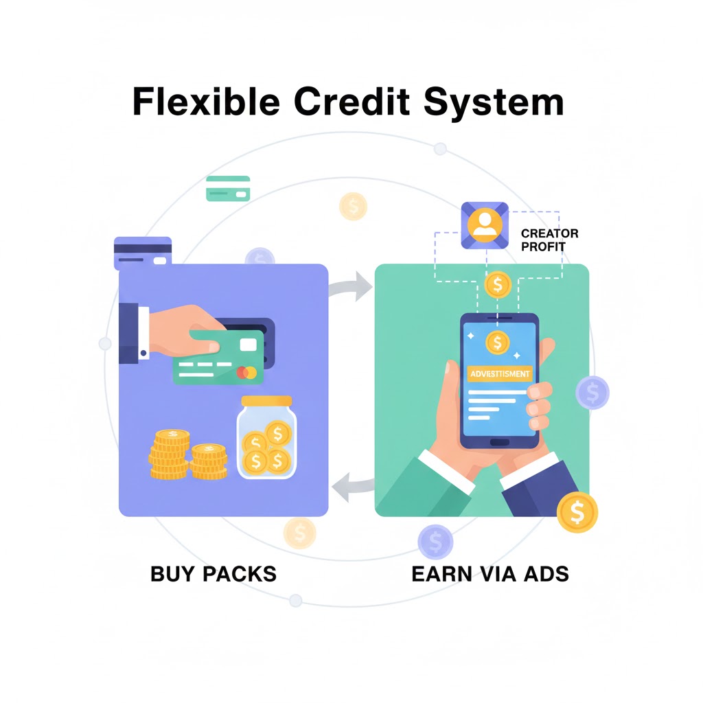 The 100% Rule: When a user unlocks premium content, the creator receives the full intended credit value. We make our revenue through clearly defined platform fees, never by skimming from the artist’s hard work.